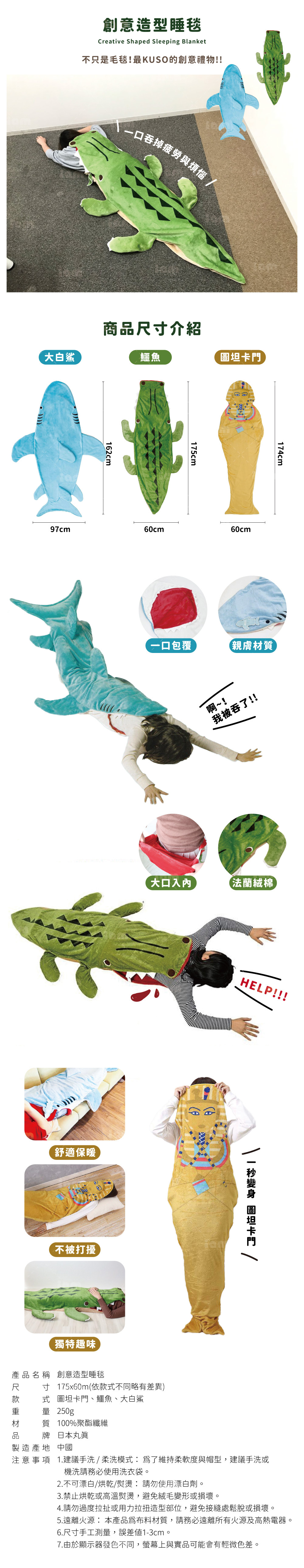 一夜變身...木乃伊?鱷魚?大白鯊?超狂創意造型睡毯!