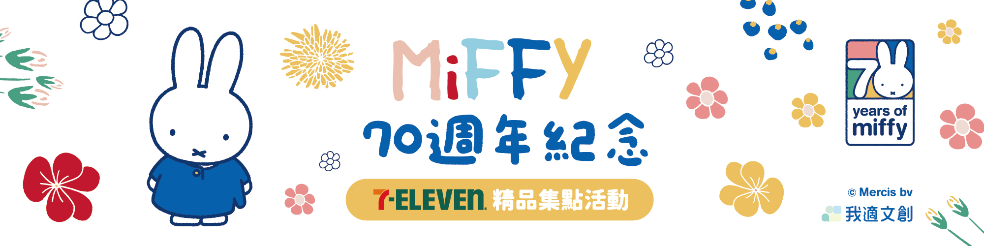 7-ELEVEN全店精品自2004年起陪伴全民掌握第一線的生活流行時尚話題,持續與全球各大人氣IP共同慶祝重要週年里程、引爆粉絲收藏熱潮。今年適逢Miffy 70週年紀念,全台各大百貨、文創園區陸續推出Miffy快閃店,官方更預告下半年全新主題樂園即將在日本長崎縣登場。為滿足Miffy迷們就近買好買滿Miffy 70周年紀念商品,7-ELEVEN自3月5日下午3點起至3月16日於全台超過7,000家門市推出快閃購活動,3月17日下午3點起接續集點加價購活動到4月30日止,近30款超萌紀念週邊以Miffy繪本中的簡約童趣風格,融合清新花卉設計,帶領粉絲沉浸在可愛的Miffy世界,向原創作者 Dick Bruna致敬。