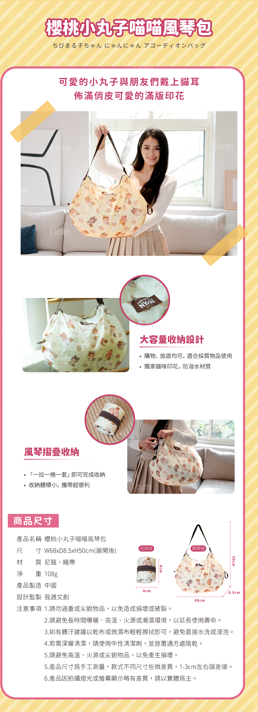 🌟台灣原創設計:由台灣團隊操刀,結合經典角色「櫻桃小丸子」與軟萌「貓咪」元素,專為台灣粉絲開發的獨家印花。