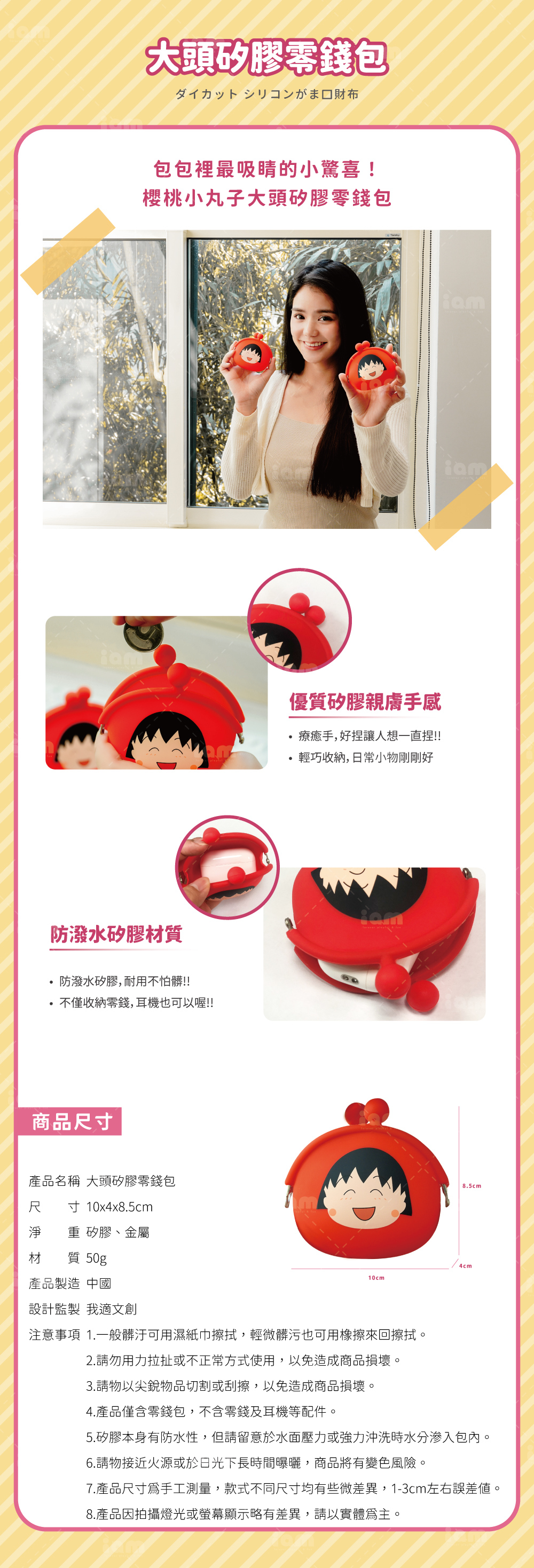 鮮艷的紅色搭配小丸子標誌性的微笑,不僅僅是零錢包,更是日常穿搭的點綴。矽膠材質髒了只要用濕紙巾輕輕一擦就乾淨,對於繁忙的上班族或學生來說,實用性滿分!