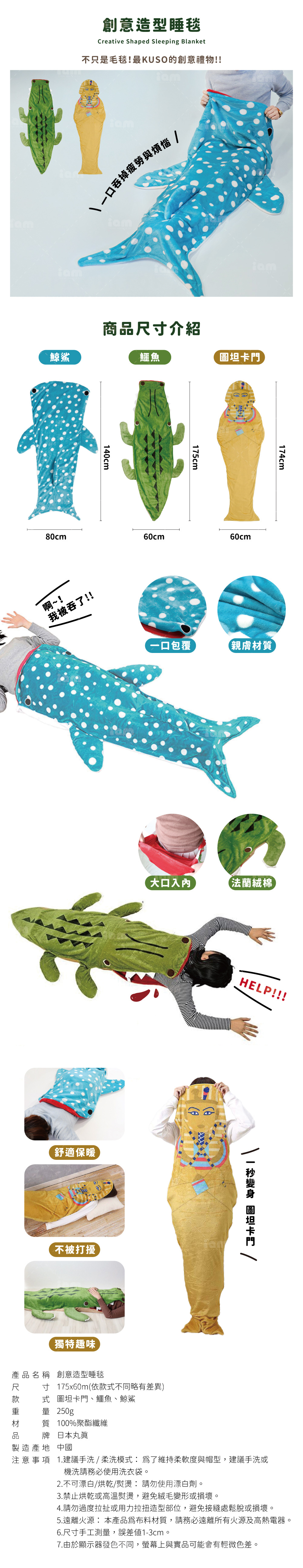 一夜變身...木乃伊?鱷魚?鯨鯊?超狂創意造型睡毯!