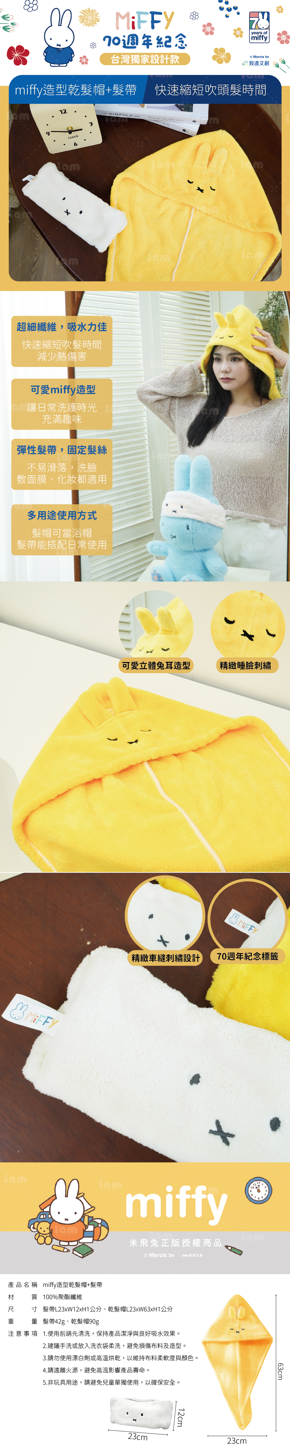 🐰 可愛miffy造型:療癒設計,讓日常洗護時光充滿趣味,戴上就像擁有miffy耳朵!