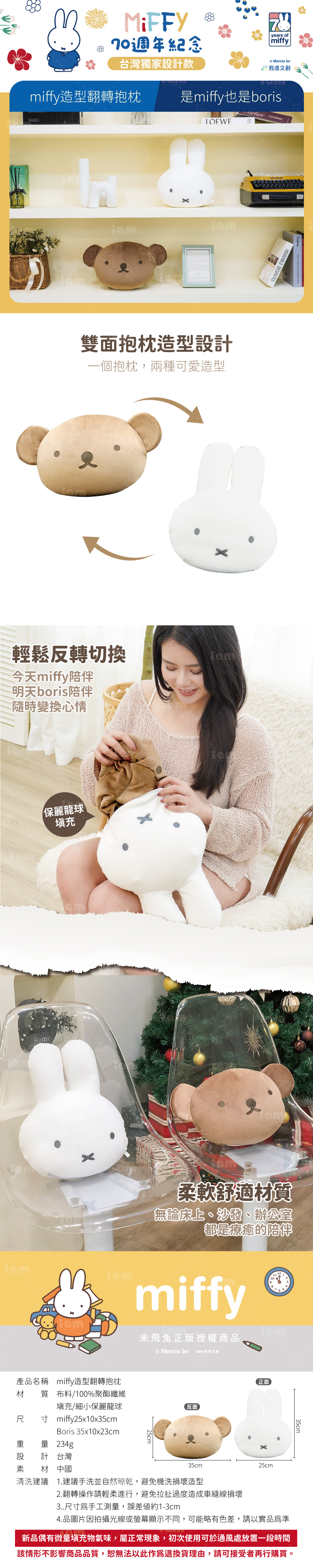 可愛的miffy化身為柔軟的抱枕,輕輕翻轉,驚喜變身成憨厚可愛的boris!