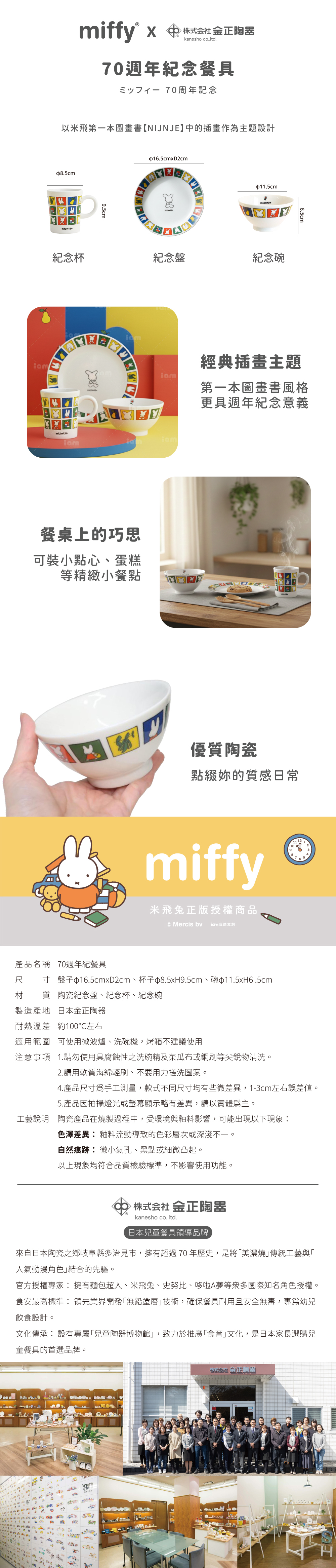 來自日本金正陶器的精緻工藝,將 Miffy 的純真色彩與高品質陶瓷結合。
