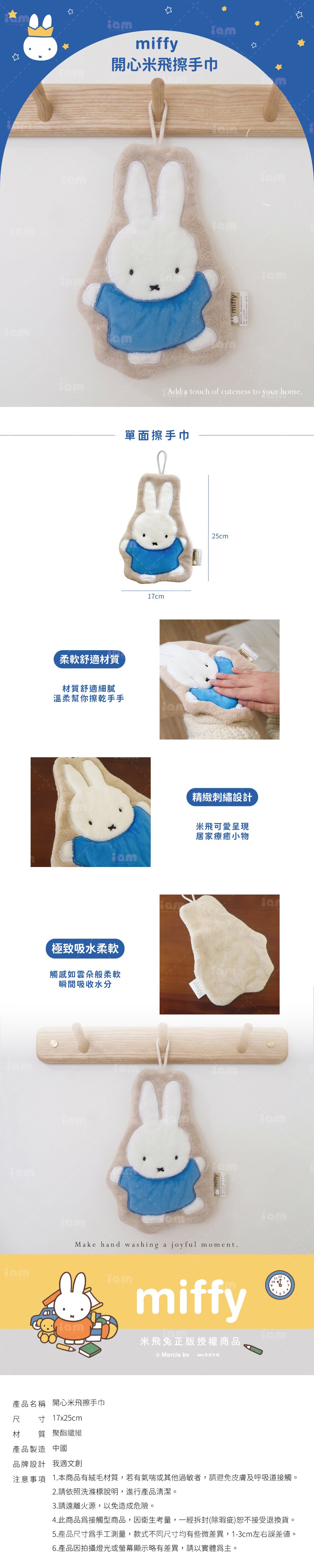 正版聯名設計:經典米飛兔造型搭配俏皮藍色上衣,讓單調的衛浴或廚房空間瞬間充滿童趣活力。