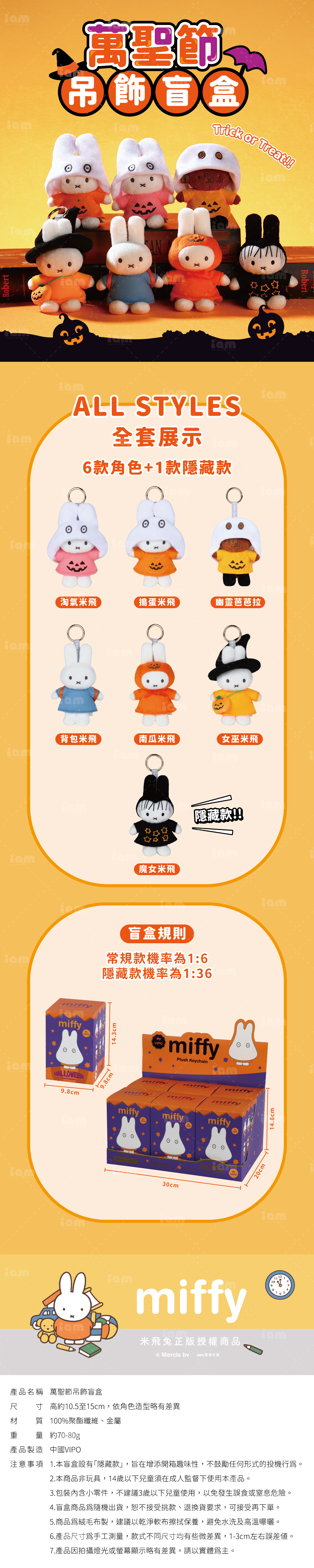 🎃 Miffy 萬聖節吊飾盲盒 全6款+1隱藏款