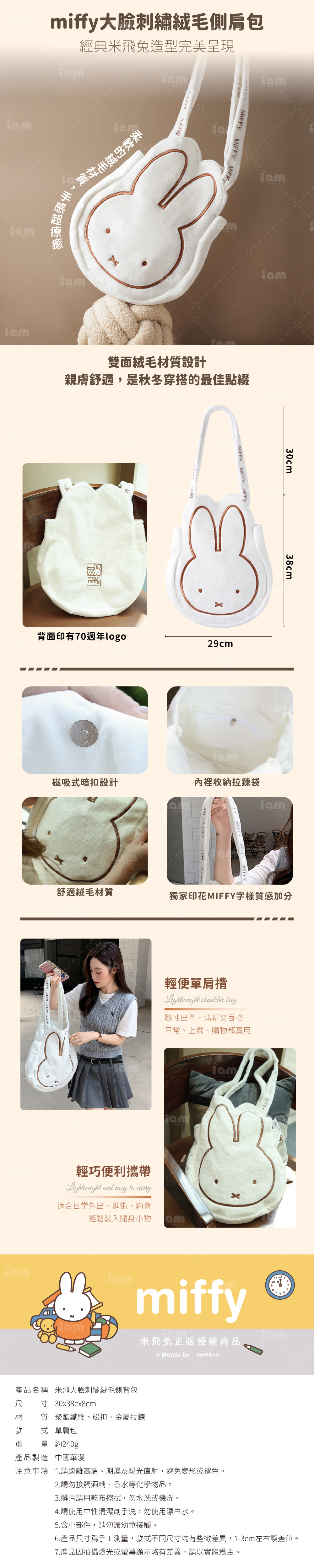 🐰超萌米飛🐰大臉刺繡絨毛側肩包!