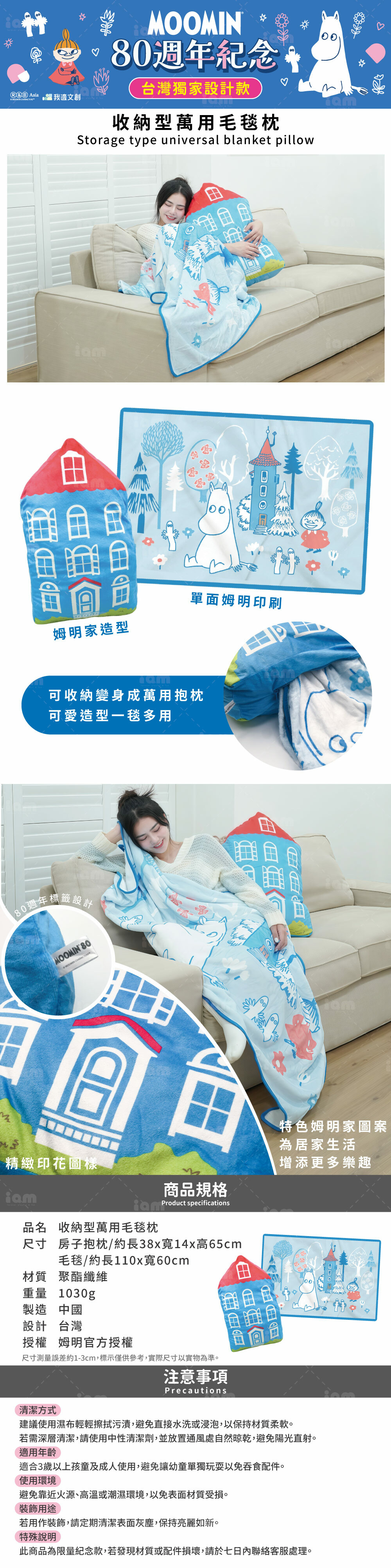 多功能設計:不僅有舒適毛毯,還能收納成可愛的姆明家房子造型,讓您輕鬆擁有整潔的居家空間與童趣裝飾。