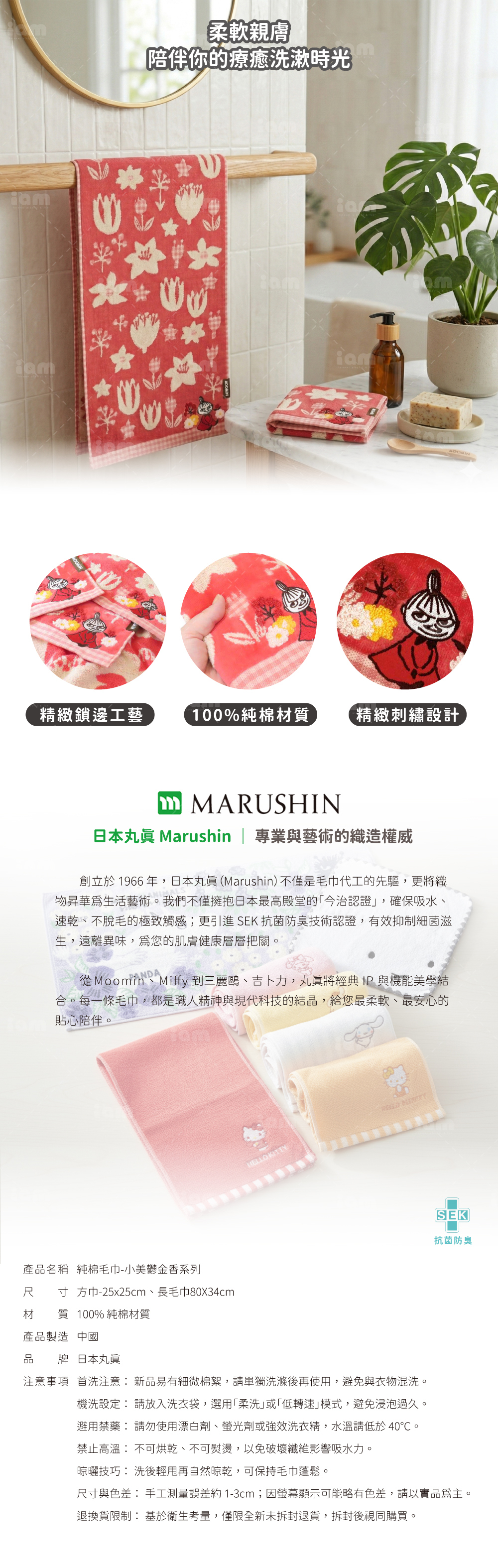 優質純棉:100% 純棉製造,觸感柔軟、吸水性強。