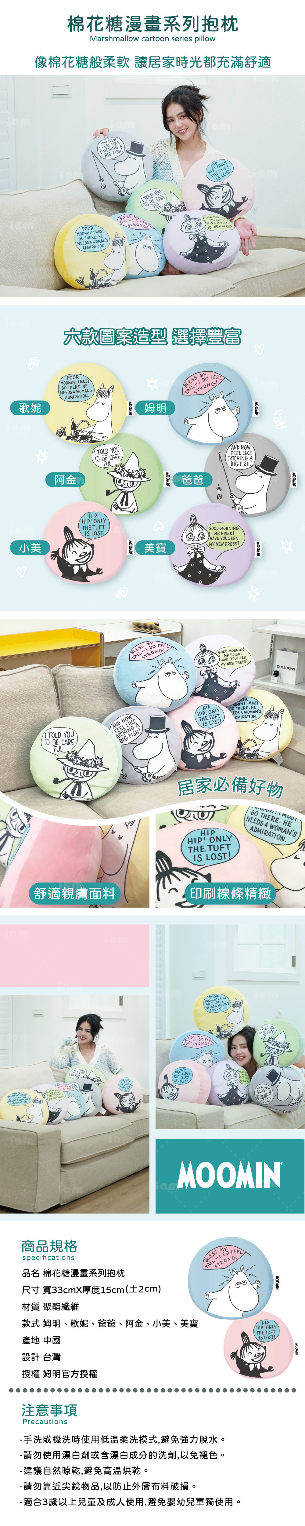 趣味漫畫圖案:每款抱枕都印有生動有趣的姆明角色與對話,為您的空間增添一抹童趣與藝術感。