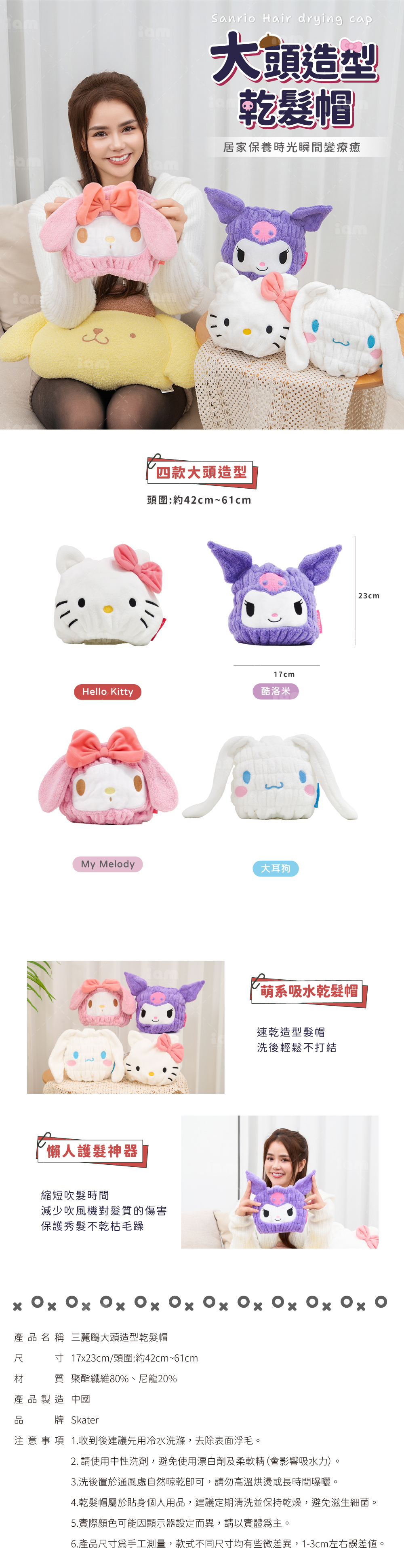 彈性束口設計: 高彈力設計,無論大人小孩或髮量多寡都能完美包裹,穩固不滑落。