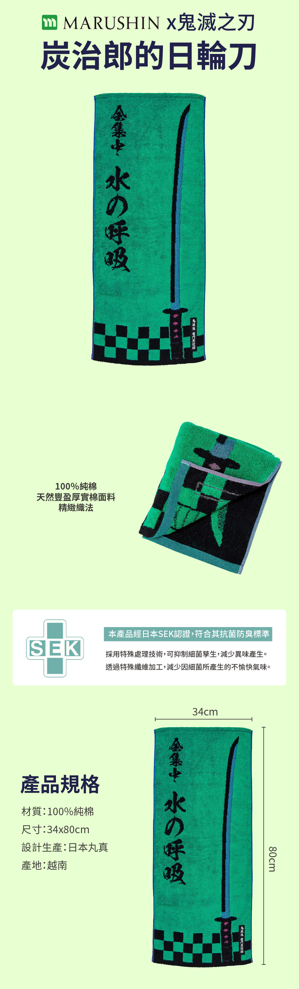讓這條毛巾陪你一起,在生活的每一個時刻,都充滿「全集中」的精神吧!
